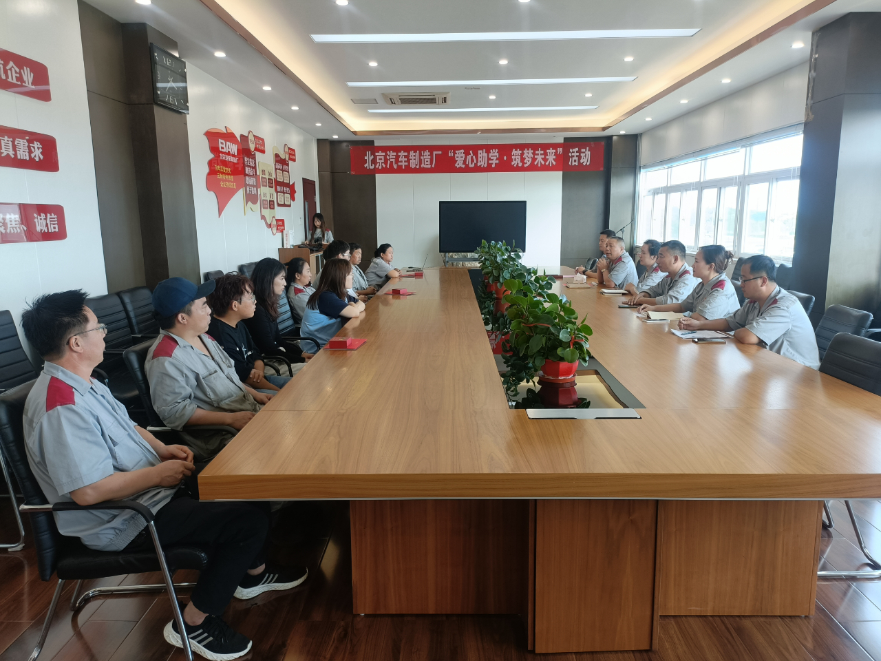 為創(chuàng)建幸福企業(yè),踐行企業(yè)和社會(huì)責(zé)任,2023年8月25日,北京汽車(chē)制造廠黃驊基地黨工委在集團(tuán)愛(ài)心委統(tǒng)一部署下舉辦了第二屆主題為“愛(ài)心助學(xué) 筑夢(mèng)未來(lái)”的關(guān)愛(ài)活動(dòng),為2023年順利考取理想大學(xué)的員工子女發(fā)放愛(ài)心助學(xué)大禮包。北汽制造黃驊基地黨委書(shū)記/總經(jīng)理李文明、黨委副書(shū)記/工會(huì)主席楊鑫春與各支部書(shū)記、受助員工及子女參加活動(dòng)。
